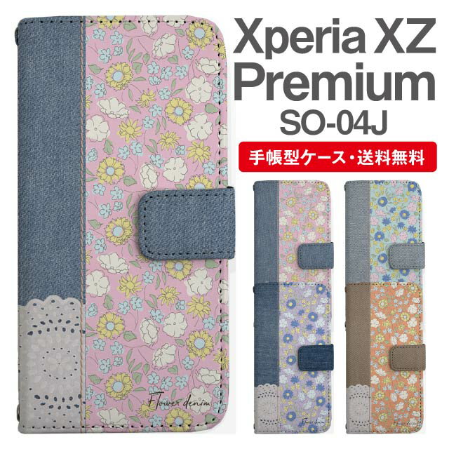 スマホケース 手帳型 Xperia XZ Premium スマホ カバー SO-04J エクスペリア おしゃれ エクスペリアケース Xperia XZ Premiumケース 花柄 フラワー 小花柄 フェイクデザイン