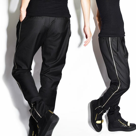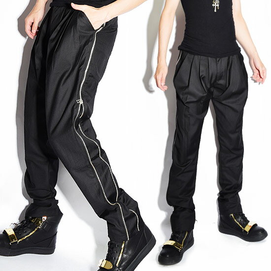 ドレープパンツ メンズ インポート ワークパンツ ジーンズ サイド ZIP ジョガーパンツ ブラック 黒 切替 美脚 細身 シルエット 脚長 足長 ボトムス きれい目 お兄系 ホスト V系 ビジュアル系 モード系 ストリート系ファッション 衣装 送料無料 秋 冬 新作