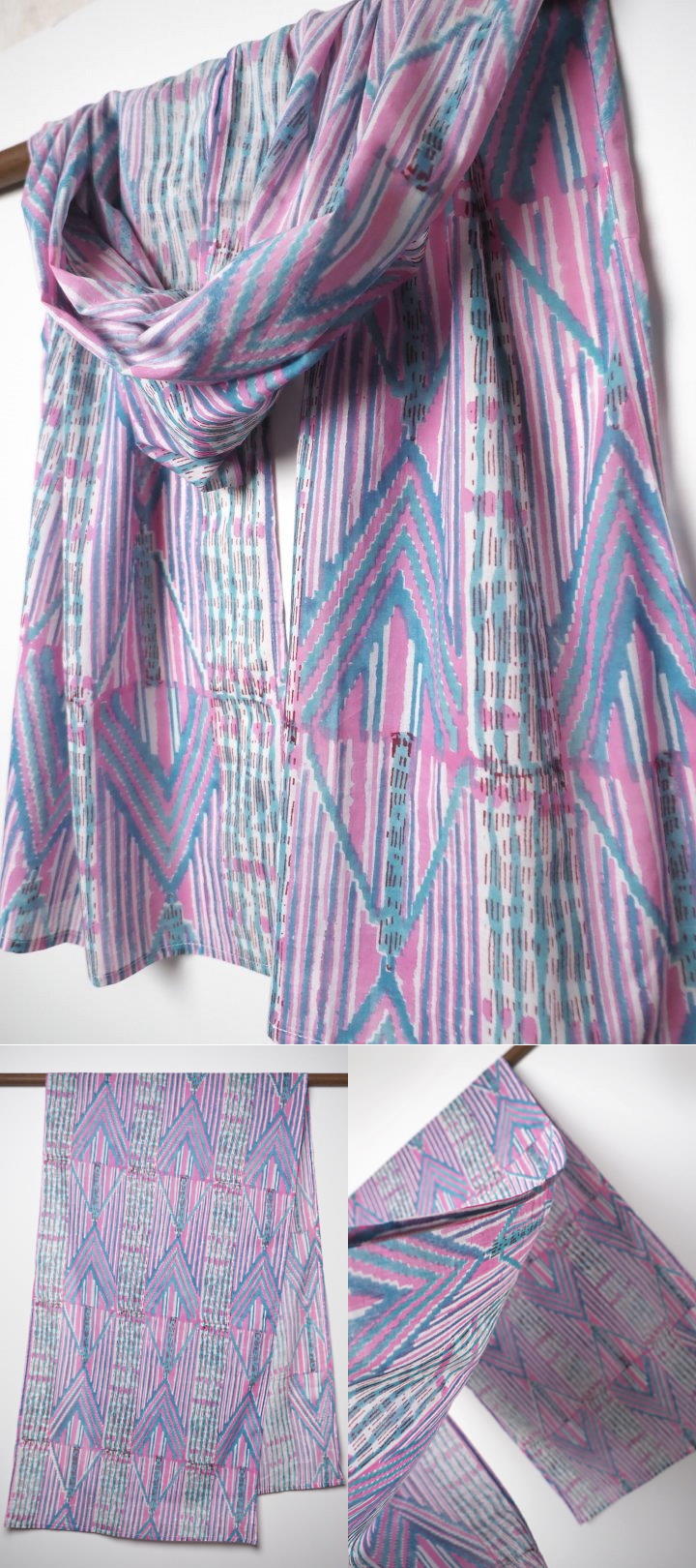 インド更紗 草木染めコットンボイルスカーフ 花柄 フラワー ボタニカル イエロー ピンク ブルーグレー プレゼント アジアン インド綿 レディース エスニック コットン ネコポスOK +H
