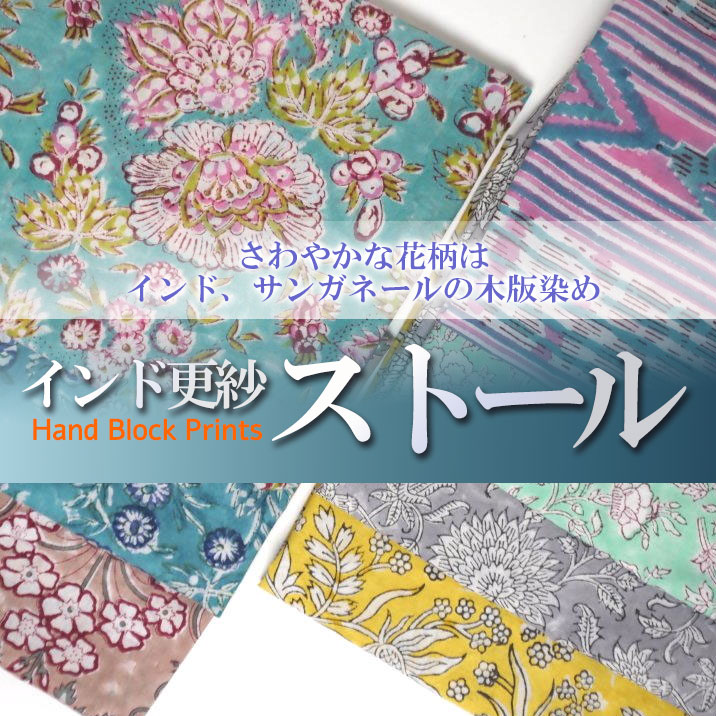 他のデザインを見る! ■サイズ:約50cm×180cm ■素材:綿100% ■重さ:60g ■原産地:インド、ラジャスタン州バグルー村、サンガネール村 ※この商品は水分吸収、風合いに大変優れた薄手インド綿のコットンボイル(Cotton Voile)という生地を使用しております。