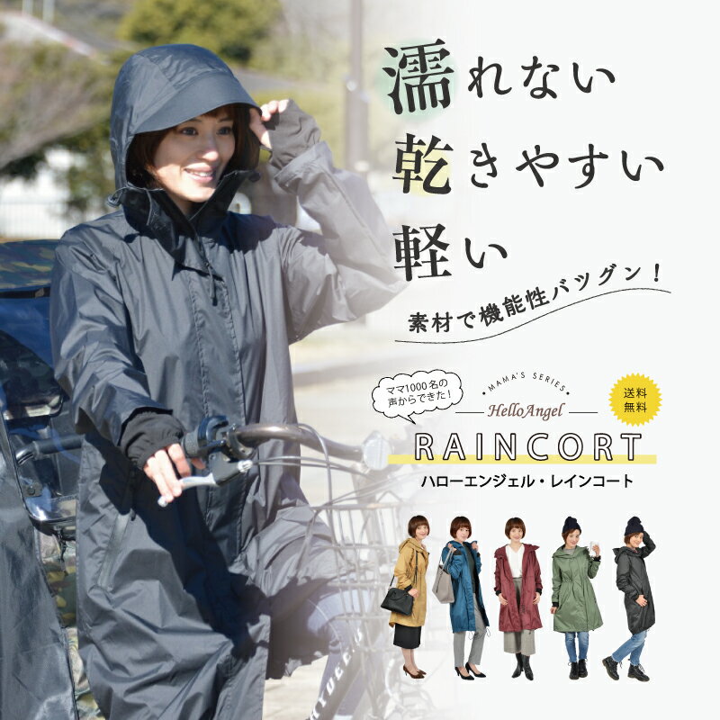 最大P5倍★ハローエンジェル レインコート(選べる5色)[サイズ M L LL] 自転車ママ1000人の声から生まれた機能性レインコート レディース 自転車 ママ おしゃれ ポンチョ 雨合羽【あす楽対応】