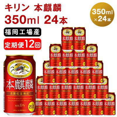 【ふるさと納税】【定期便12回】キリン 本麒麟 350ml(24本)福岡工場産 ビール キリンビール 【定期便・ お酒 アルコール飲料 12回お届け 晩酌 長期 低温 熟成 調和のある味わい 飲み会 家飲み 宅飲み 】