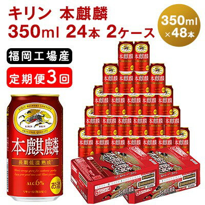 【ふるさと納税】【定期便3回】キリン 本麒麟 350ml(48本)24本×2ケース 福岡工場産 ビール キリンビール 【定期便・ お酒 アルコール飲料 3回お届け 晩酌 長期 低温 熟成 調和のある味わい 飲み会 家飲み 宅飲み 】