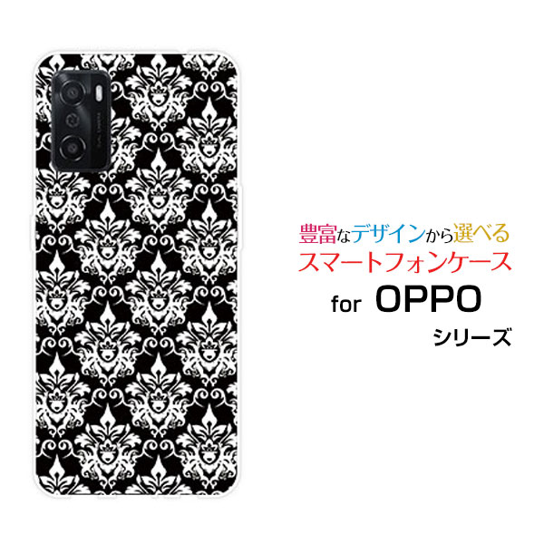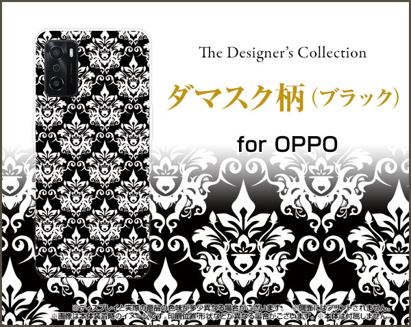 OPPO A55sオッポ エーゴーゴーエスSoftBank 楽天モバイルオリジナル デザインスマホ カバー ケース ハード TPU ソフト ケースダマスク柄(ブラック)