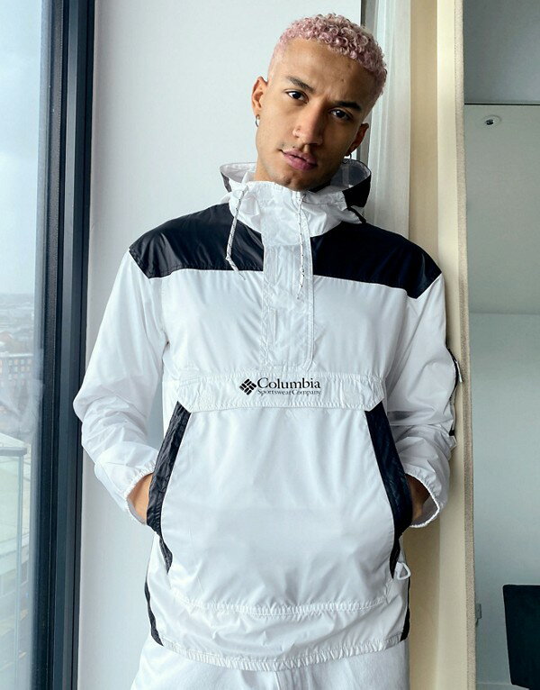 コロンビア Columbia 白とグレーのコロンビアチャレンジャーオーバーヘッドウインドブレーカー アウター メンズ 男性 インポートブランド 小さいサイズから大きいサイズまで