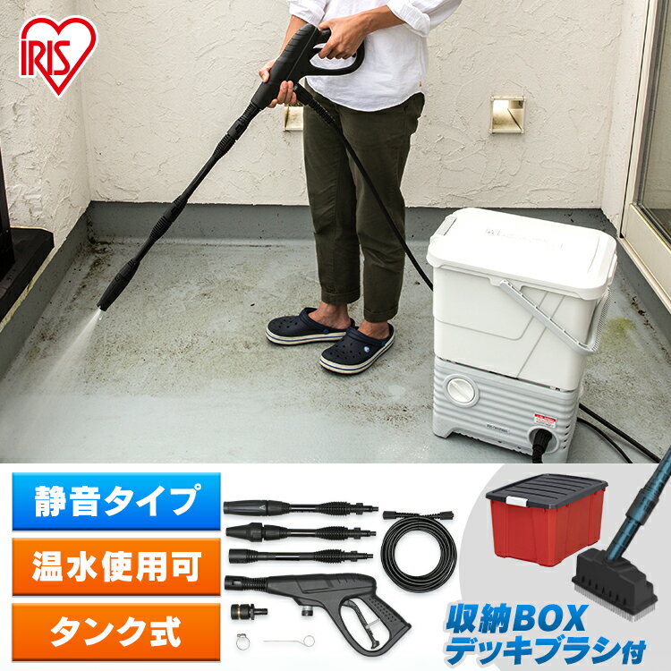 【デッキブラシ+回転ブラシセット】アイリスオーヤマ 高圧洗浄機 静音タイプ 温水対応 タンク式 SBT-512N